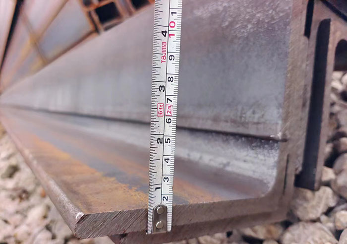 上圖為:蘇滬倉(cāng)庫(kù)實(shí)拍∠150×150×12mm角鋼現(xiàn)場(chǎng)測(cè)量圖